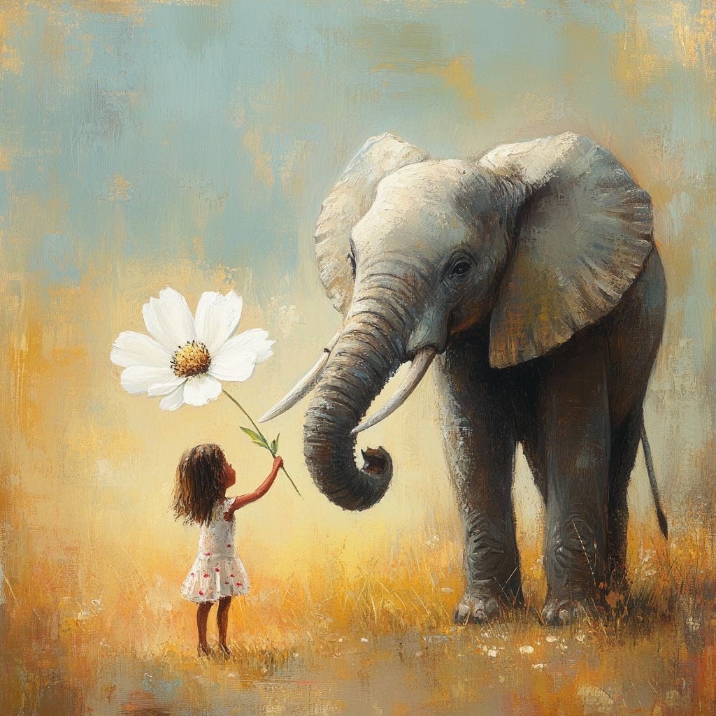 كما لكم أن تتخيلون أيضًا أنها عُضدٌ قويّ في حال المواجهه .. أو التصدي لفيله أخرى مؤذيه .. يمكن للفيل أن يتواصل معك بجميع الوسائل الصوتيه ومن خلال جسمه أيضًا